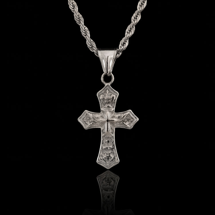 Stop paying luxury prices for the same look. Faith in Pain is built on a solid 316L stainless steel core and finished with a durable PVD triple-coat 18K gold layer, so you get the gold look without the overpriced markup.